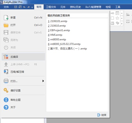 打開編輯 HMI上的工程,則需通過反編譯處理將 EXOB文件反編譯成emtp文件,